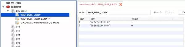 这个键里面的数据还可以存成键值对的形式,方便存入点赞人、被点赞人和点赞状态。