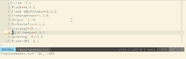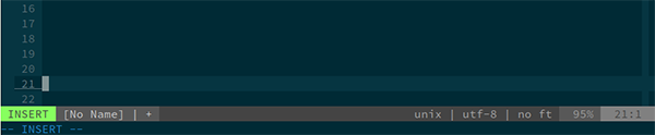 Vim 有很多这种插件,例如 Powerline,它会在底部栏显示你正在处理的文件、光标所在的文件位置以及文件类型等信息。这些插件各有利弊,在简单比较后,我选择了 lightline。它相对较小,便于安装和扩展,并且不依赖于其他工具或插件。