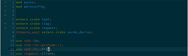大多数 IT 人员都使用 Git 和 Git 仓库中的文件进行工作。gitgutter 插件在行号附近添加了一列,通过符号显示该行的状态为:已更改(~)、已添加(+)或者已删除(-)。这有利于跟踪你所做的更改,并且可以使你专注于手头的任务,例如编写补丁来修复一个关键错误。
