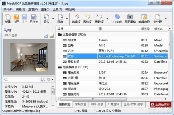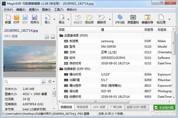 下面以MagicEXIF这款工具为例,给大家演示一下。