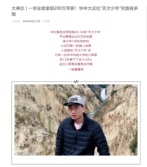 近日,一位华中科技大学的学生刚毕业就拿到华为200万年薪引发网友关注。今天,“刚毕业就年薪200万”的话题冲上热搜。