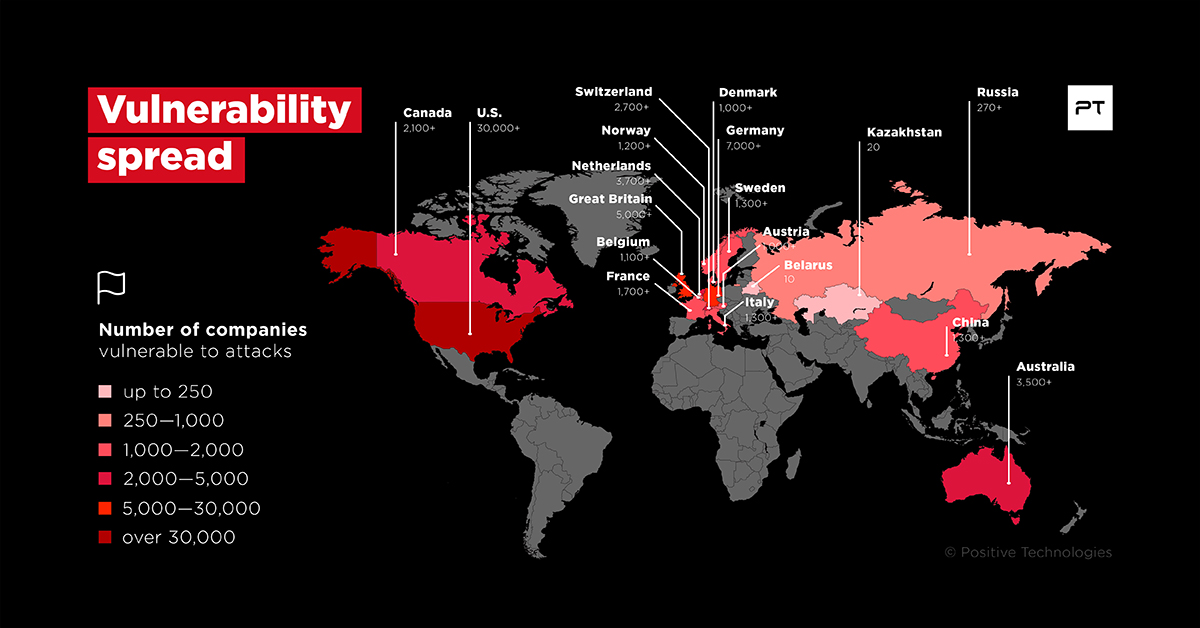 ”Positive Technologies 的专家确定,全球 158 个国家中至少 80000 家公司面临潜在风险。“公告提到。
