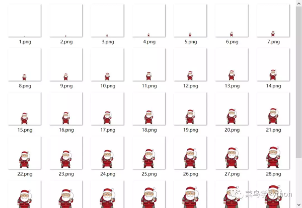 file_path = 'pic' imgList = os.listdir(file_path) imgList = ['pic/'+img for img in imgList] gifList = [imageio.imread(img) for img in imgList] imageio.mimwrite('gif.gif', gifList, duration=0.15)来看合成后的动图效果(下图),仔细看看好像有点问题,怎么图中的圣诞老人忽大忽小?这跟我们预想的不一样啊。
