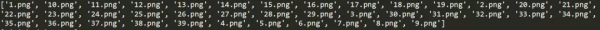 可以看到,素材图片并不是按照我们预想的顺序排序。这在python的文件处理中也算是个比较常见的问题,解决方案之一是可以按照图片的创建时间排序,具体操作是在上面的第二行代码之后插入一条语句: