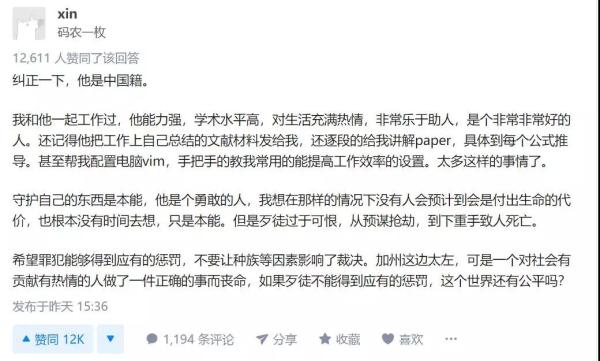 据悉,目前曾硕在中国的父母已经赶往加利福尼亚。曾硕的邻居们计划在当地时间 1 月 4 日晚举行烛光守夜活动,以纪念 2019 年 12 月 31 日 11 时 30 分遇难的曾硕。