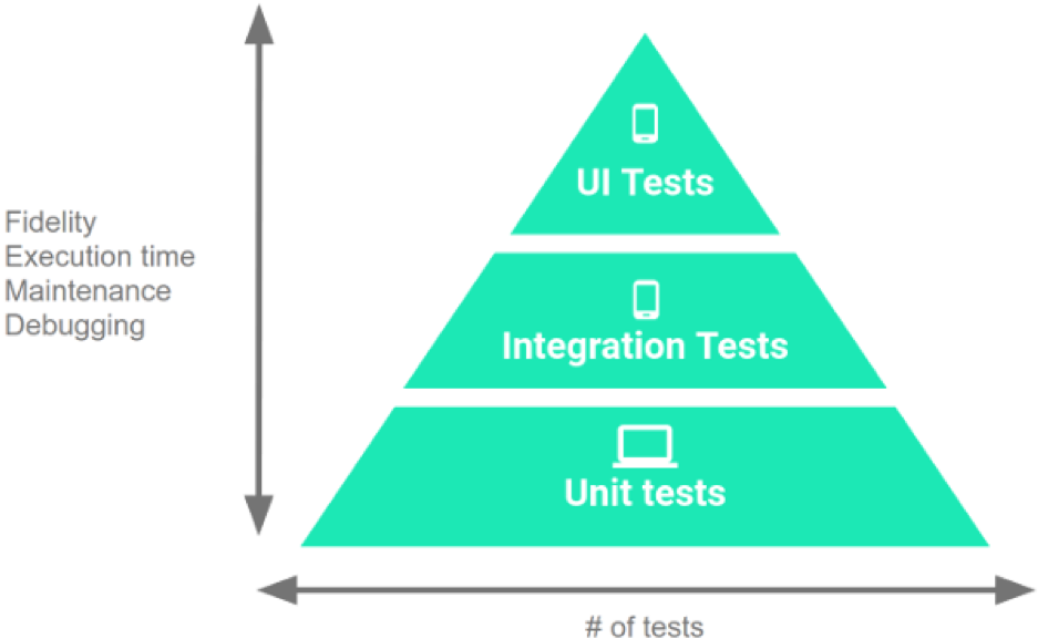 谷歌建议将测试的分布定为 70%的单元测试、20%的集成测试和 10%的大型测试,占比较小的部分需要更长的执行时间、维护时间和实施时间。