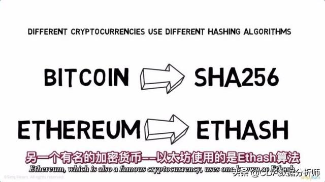 不同的加密货币使用不同的哈希算法,比特币使用的是SHA256 算法,另一个有名的加密货币—以太坊使用的是Ethash 算法。