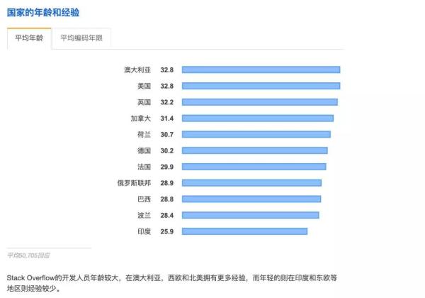 下面有统计各个国家程序员的平均年龄的图表: