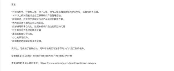 我们再看一下国外的产品经理 JD,下面是 indeed 的产品经理:
