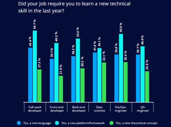 我们还可以看到,数据科学家和 DevOps 工程师是最频繁被要求学习新概念的群体。