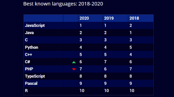 • JavaScript 是最知名的编程语言,其次分别是 Java 和 C