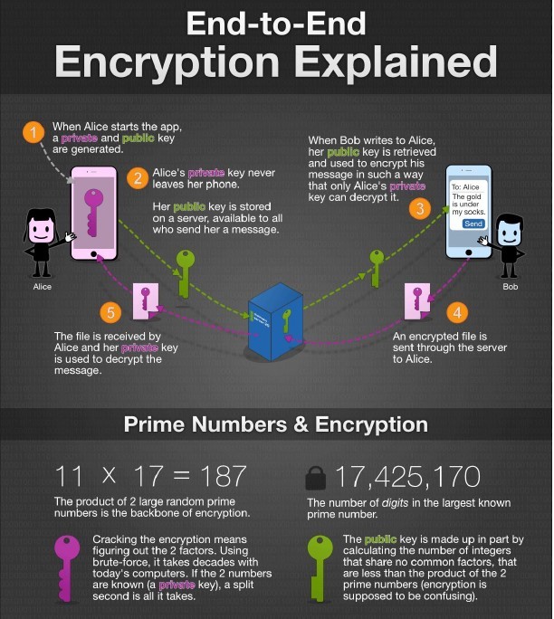 在开始实际行动之前,让我们先来探究一下端到端加密的原理。从本质上说,我们在从服务器端发送消息时,会将整个数据、消息、以及多媒体流转换为不可被追踪的数据块。任何消息从发送方服务器传输到客户端服务器的整个过程,都处于被私钥加密的状态中。