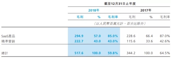 2019年,微盟在香港上市,其核心业务之一便是SaaS产品,作为一家服务商,微盟的销售成本除了的“精准营销”成本外,另一部分就是“SaaS产品”的成本,由于研发投资的增加和自主开发软件等,此成本一直在增加。