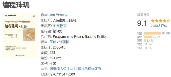《编程珠玑》并不是一本教授新编程概念的普通书籍。虽然它包含了一些很好的,有时甚至是很新颖的想法,但这本书的目的不是教一些新的东西,而是帮助你成为一个更好的问题解决者。