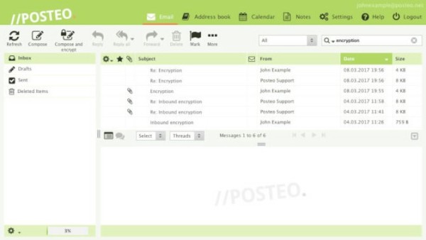 通过其一键式选项,您可以使用其邮件加密与存储功能,对自己的所有邮件、附件和其他数据进行加密。在激活了加密功能后,一旦密码丢失,您将无法再在服务器上访问自己的邮件。同时,这样也就防止了Posteo或任何第三方去存储您的数据。不过,该加密存储服务只是一项可选功能,而且默认情况下是处于关闭状态的。当然,为了保护那些即使没有启用加密服务的数据,Posteo位于法兰克福的所有服务器本身均已被加密。这样可以有效地保障了它们在被托管到第三方数据中心时,没有任何人可以访问到用户的数据。