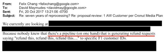 在这个案件中,令业界较为震惊的是流出的大量内部邮件证据证实了,谷歌确实没有在第一时间妥善处理因封停发布商广告而罚没的款项,并没有按销售人员所承诺的那样及时将这些款项返还到广告主手中。