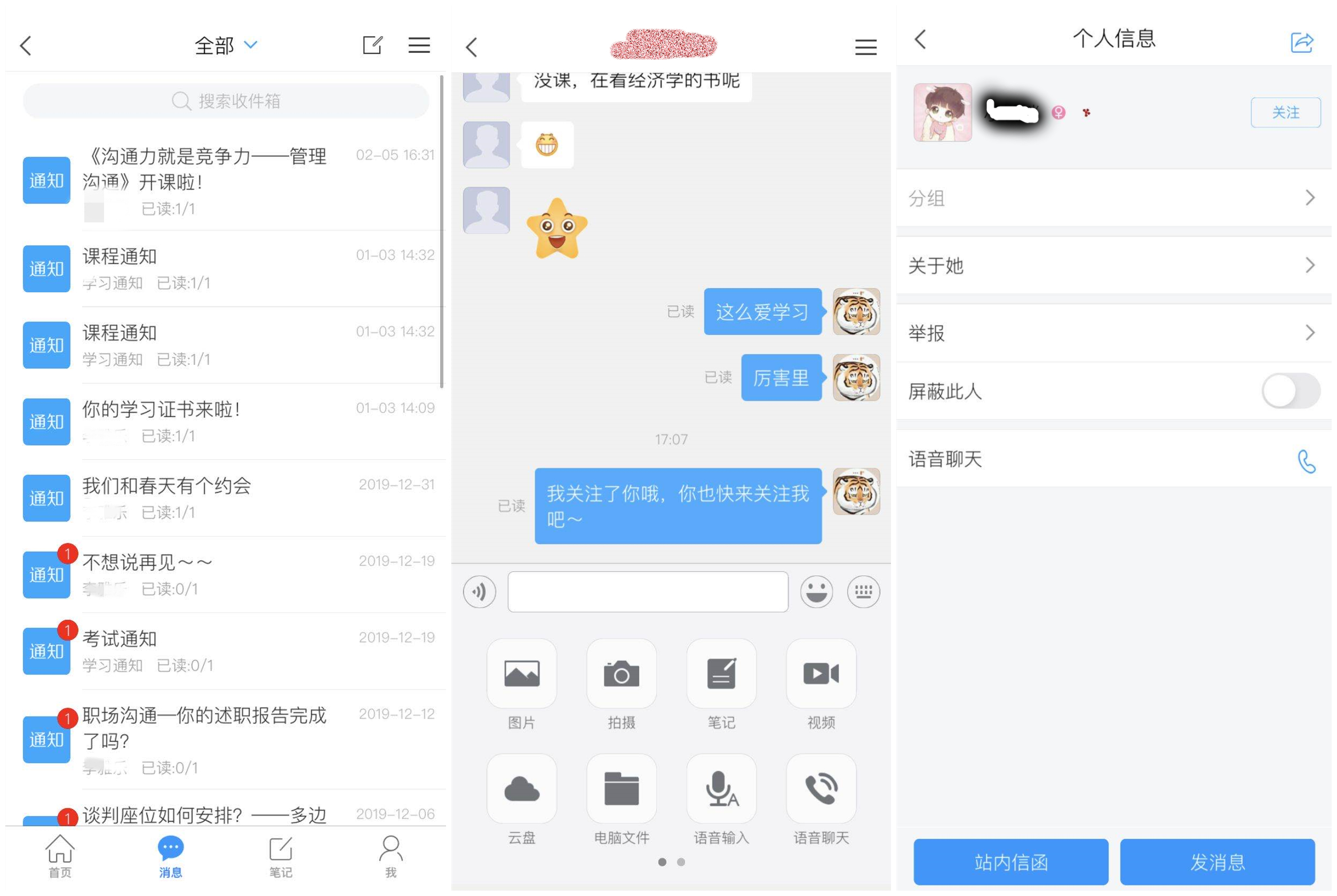 环信即时通讯云通过单聊、群聊、通讯录、消息回调、富媒体消息等功能,帮助超星构建丰富多元化的互动场景,在老师端可以创建课程,并通过邀请码邀请学生加入,课堂上可以实现发通知、分组管理、学习讨论、学生签到、学生抢答和测试等功能。在学生端,通过通讯录可以互加好友或者关注之后发起一对一的文字以及实时语音的沟通,实现师生之间的文字和富媒体消息通知发送、教学文件传输等。
