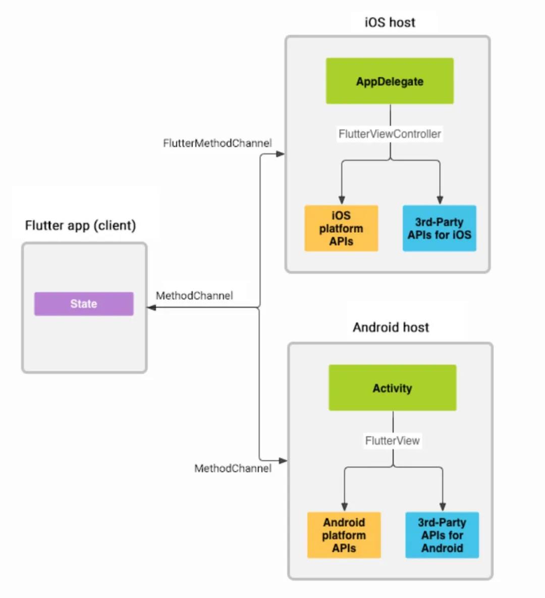 使用平台通道在客户端(Flutter UI)和宿主(平台)之间传递消息。