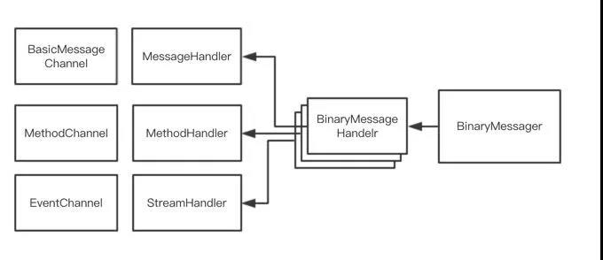 三种 handle 分别与三种 channel 对应,当我们向 channel 注册一个 handle 时,实际上就是向 BinaryMessager 注册一个对应 BinaryMessageHandler。当向 channel 发送消息时,就需要使用对应的 handle 来处理。