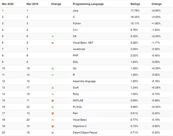 进入三月,新的编程语言排行榜新鲜出炉,TIOBE 最新发布了 3 月编程语言排行榜。