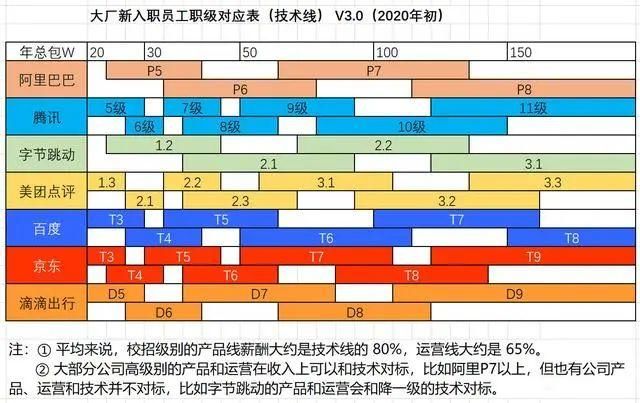 谈薪酬之前,要先了解一下行业中和你职位相似的薪资水平。前几天网上热传一张图:大厂新入职员工职级对照表。这张图来自于民间,虽然不是很准确,但是还算靠谱。