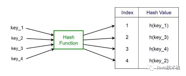 在直接访问中,带有密钥k的值存储在插槽k中。使用哈希函数,我们可以计算出每个值都指向的表(插槽)的索引。使用给定键的哈希函数计算的值称为哈希值,它表示该值映射到的表的索引。
