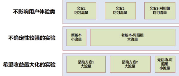 不影响用户体验:如 UI 实验、文案类实验等,一般可以均匀分配流量实验,可以快速得到实验结论