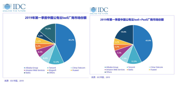 在IDC报告中,2019上半年中国公有云的IaaS(基础设施即服务)的市场份额见下图: