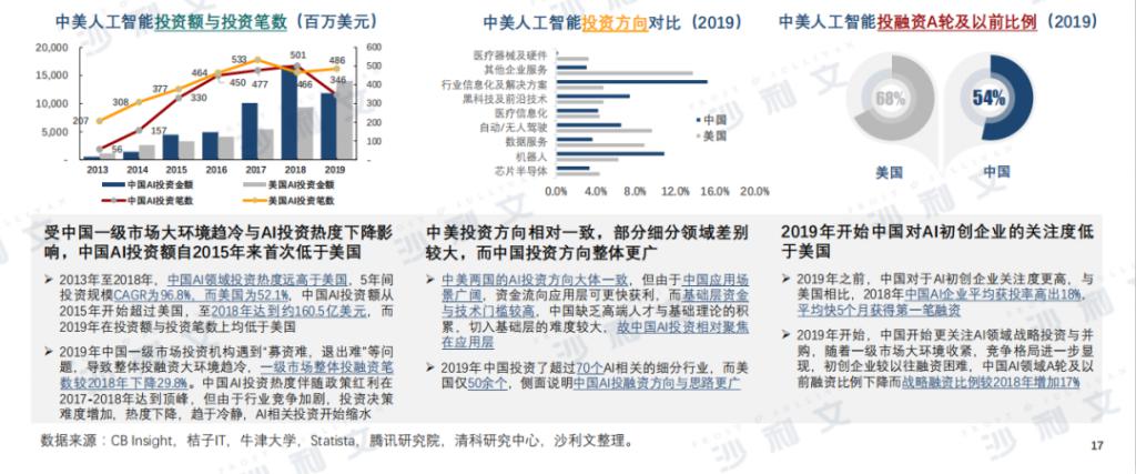 人工智能是中美一级市场热门投资领域,中国人工智能细分领域投资方向广于美国,投资轮次正在后移。
