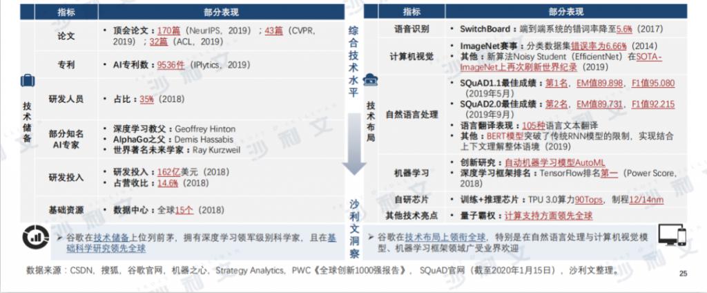 谷歌拥有世界顶尖科学家团队,重视基础科学研究,使其技术储备优势较大,同时创新能力出众,使其在技术布局上全球领先。