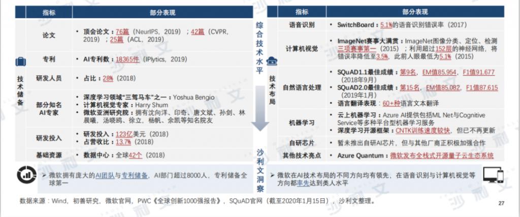 微软卓越的人才储备及专利储备使微软在技术储备名列前茅,也促使其在技术布局的广度与深度均有领先。
