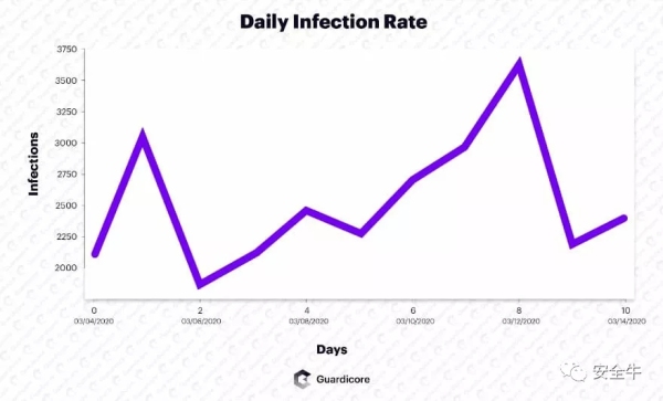 3月上旬平均每天感染数量超过3000次 数据来源:Guardicore