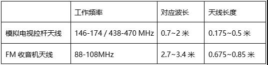 所以,我们会看到,模拟电视拉杆天线长度一般是0.175~0.5米、FM收音机的天线长度是0.675~0.85米。