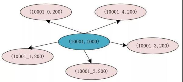 此时,我们在 Redis 中存储的信息为(10001_0, 200),(10001_1, 200),(10001_2, 200),(10001_3, 200),(10001_4, 200)。