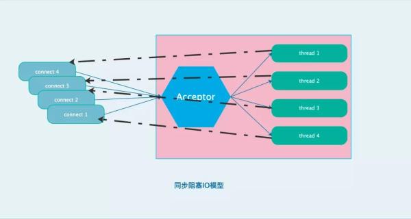 同步阻塞线程模型的问题在于一个请求必须绑定一个线程去处理,并且所有的请求都是同步操作,意味着该请求未处理完之前这个连接不会被释放,如果并发高的情况必然会导致系统压力过大。