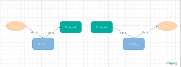 Channel 通道,所有 Buffer 内的数据都会往 Channel 上流,数据通过 Channel 流向处理逻辑,通过 Channel 将处理过的数据返回给客户端。