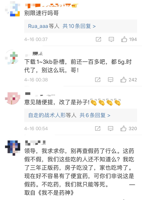 还有网友表示:谢谢您给我 3kb 的网速;别限速行吗,哥?