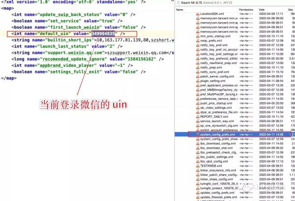 # 当前登录微信的配置文件 /data/data/com.tencent.mm/shared_prefs/system_config_prefs.xml