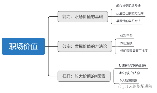 其中,『能力』是职场价值的基础,『效率』是运用能力发挥价值的方法论,『杠杆』是价值最大化的 X 因素。