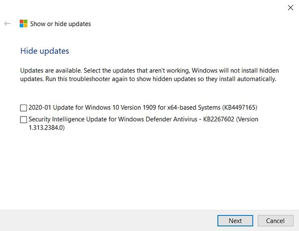 如果特定更新导致设备出现问题,可以使用微软的“显示或隐藏更新”问题排查工具来暂停它。