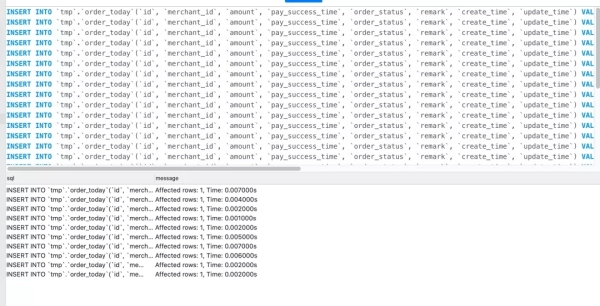 INSERT INTO order_record SELECT * FROM order_today WHERE pay_success_time < '2020-03-08 00:00:00';