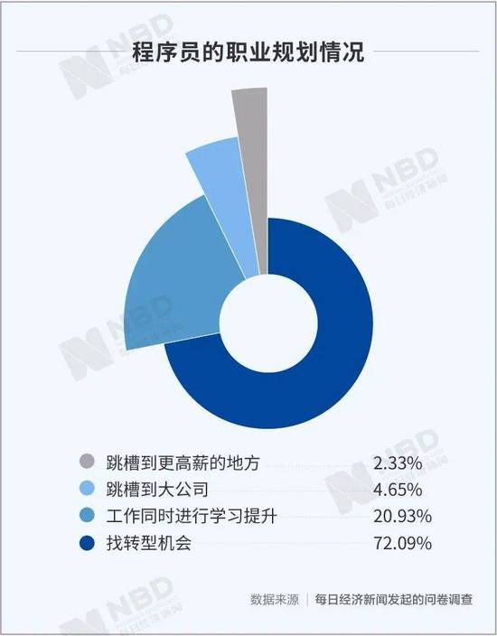 每日经济新闻在微博发起了问卷调查,在收到的近百份答卷中, 有高达72%的程序员在找转型机会,其中更有39.5%的程序员在考虑告别这个行业。