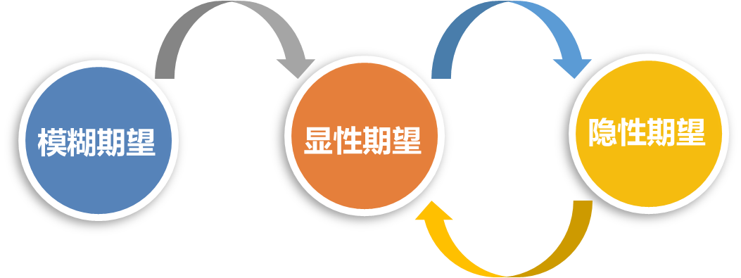 格隆鲁斯顾客期望模型(图1)将客户期望根据清晰化程度分为三个类型:模糊期望、显性期望与隐性期望。模糊期望即客户期望服务提供者为其解决某一问题,但并不清楚怎么解决。虽然无法清楚表达自己的期望,这些半认知状态下的期望仍然会对客户行为产生重大影响,决定他们对服务质量是否满意;显性期望即在服务过程开始之前就已经清晰存于客户心中、能够主动、有意识地表达出的期望;而隐性期望则是客户认为服务提供者理所当然会实现的期望,这些期望过于明确导致客户觉得没必要再加以表达。无论是上述的哪一种期望都会显著影响客户对服务质量的感知。因此,作为服务提供者,企业有必要在实现客户显性期望与隐性期望的基础上,尽可能挖掘模糊期望并使之显性化。但基于三种期望在服务状态中处于可转化的一种动态关系,例如随着客户经验与对应知识的不断积累,模糊期望会趋于清晰,随着双方交互次数增多,客户对企业的显性期望又会内化为企业理所当然应该实现的隐性期望,因此,即便企业已经实施了良好的期望管理,服务失败在实践中也在所难免。