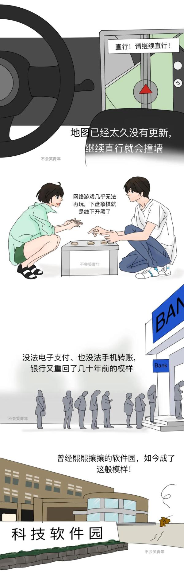 忘了朋友圈、微博、小视频吧,老老实实读书看报;忘了电子支付、在线转账吧,安安生生去银行排队;也许软件园慢慢会变成遗址景点;也许电脑会安静的躺在历史博物馆,一切节奏会变得越来越慢,就像回到了很久以前!