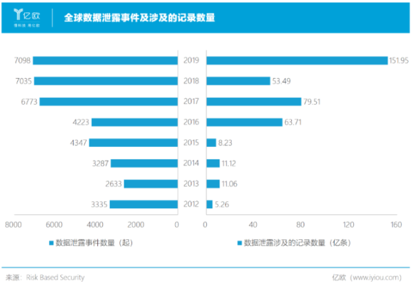 数据泄露已不是偶然。Risk Based Security数据显示,2019年全球共发生7098起数据泄露事件,涉及数据记录数量151.95亿条。