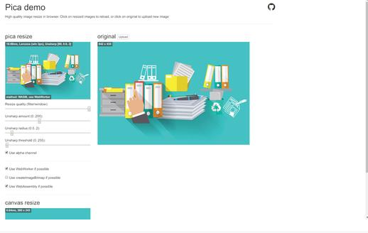 此插件可减小大图像的上传大小,从而节省上传时间。它可以在浏览器中调整图像大小,而不会出现像素化现象并且相当快。它会从web-workers, web assembly, createImageBitmap and 纯JS自动选择优秀的可用技术。