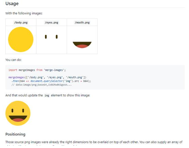 该库使可以轻松地将图像合成在一起。有时,使用画布可能会有些繁琐,特别是如果你只需要画布上下文来做相对简单的事情(例如将一些图像合并在一起)时。merge-images将所有重复性任务抽象为一个简单的函数调用。图像可以彼此重叠并重新放置。该函数返回一个Promise,该Promise解析为base64数据URI。同时支持浏览器和Node.js。