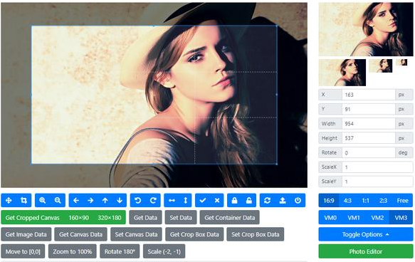 该插件是一个简单的JavaScript图像裁剪器,可在可视化环境中裁剪,旋转,缩放和缩放图像。它还允许设置纵横比。