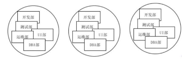 但是在实施微服务的时候,希望能协同配合快速交付,如果还是需要多次跨部门协调处理问题的话,那么“微”很难实现“微”的好处,微服务的团队应该是如下所示,所以如果没有高层参与那么组织架构就不会调整。