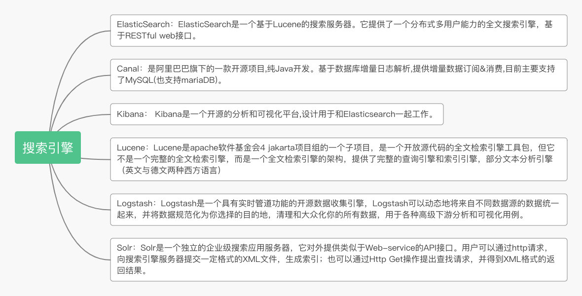 那全文检索引擎就诞生了,解决了搜索的问题,你得思考怎么把数据库的东西实时同步到ES中去,那你可能会思考到logstash去定时跑脚本同步,又或者去接触伪装成一台MySQL从服务的Canal,他会去订阅MySQL主服务的binlog,然后自己解析了去操作Es中的数据。